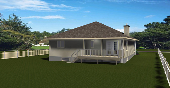 What great curb appeal with the gable peaks on a cottage roof. The fluted columns and the stone accent add the finishing touch to make this home stand out. From the covered veranda, you enter the great room. A gas fireplace is centered between the dining area and great room. An "L" shaped kitchen which opens to the dining and great room has ample counter and cabinet space. The working island also has a lunch bar. A double garden door leads out to the rear deck and yard. This deck is partially covered. The laundry room is conveniently located by the bedrooms. The guest room is a nice size with a large closet. The master bedroom features a walk-through closet and a three piece bath. From the mudroom, you enter the 2-car garage with a 16'x8' overhead door. The basement has not been developed except for the mechanical room. Standard egress sized windows are placed for future bedrooms. The perfect all around home plan.