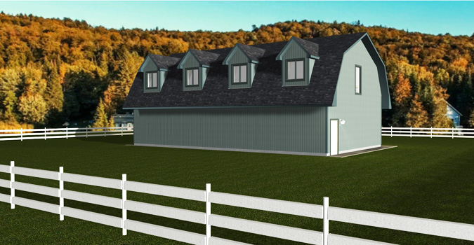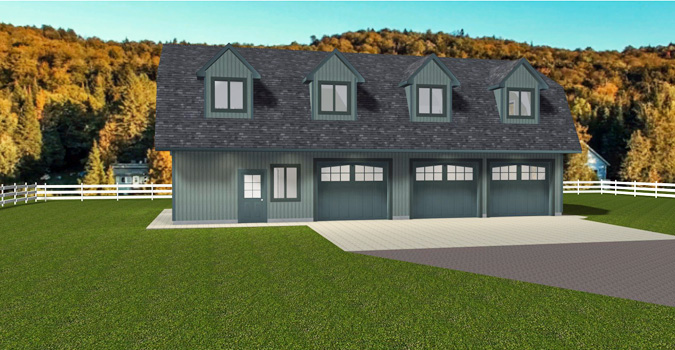 This unique plan is a 3-car garage or shop with 10' ceilings and three bays, all with 10'x8' overhead doors. It has a barn-style look. Enter from the front into an open area. The utility room is on the main level. Upstairs are the living quarters. There is a 900 Sq. Ft. open area, one bedroom, and a 3-piece bathroom. There would be lots of room at the lake to store your boat or other water toys. Great for a detached garage or a cabin at the lake.