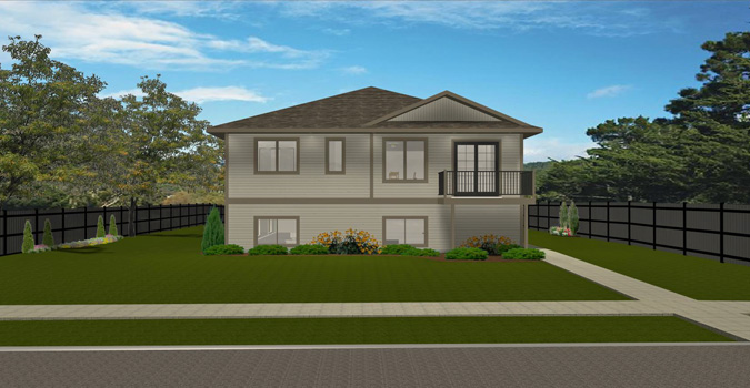 If you have a deep building lot, then this plan would be perfect. Another straight, four-corner building which really helps to keep the construction costs down. The side entrances give access to the upper or lower floors. The upper floor features a U-shaped kitchen which is open to the dining and living rooms. A patio door opens onto the deck. The utility room has more space for storage. The laundry room is conveniently located by the two bedrooms next to the 3-piece main bath. The master bedroom features a 3-piece ensuite and a walk-in closet. The lower level has two good-sized bedrooms with closets. This level also has its own mechanical and laundry room. There is a large storage area beside the L-shaped kitchen. This kitchen also has a large working island. The kitchen, dining and living rooms are all open to each other. With this being a bi-level, all the windows in this level are 40" high. A good investment design.