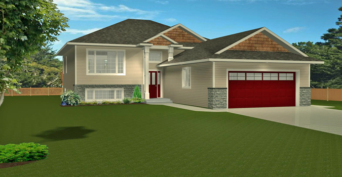 From the large front foyer you can either go up to the main level or down to the basement level. The main floor has three bedrooms including one master suite with its own walk-in closet and ensuite. The living room, kitchen and nook are all one open concept with a vaulted ceiling. Double garden doors lead out to the large rear deck. A laundry room is conveniently located by the bedrooms. The two-car attached garage has enough room for a workbench at the front, and also has a mandoor on the side. It has superb curb appeal with the high post detail, multi- roof lines, and stone trim. It would look great in any neighborhood.