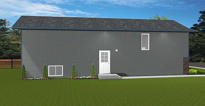 A great looking plan for a narrow lot. This bi-level is very cost effective to build, yet still has very nice curb appeal. The side entrance leads up to the main floor or down to the lower level. The "L" shaped kitchen includes the eating area and is also open to the living room. Two large windows in these areas provide lots of natural lighting. There is a large three piece bath and provisions for a stackable washer/dryer in the hallway. The lower level has 30" high windows for lots of natural lighting. Using "Clear Span" floor joists leaves the floor area on the lower level free of support posts. The lower level is undeveloped except for a mechanical room, so you could easily put in another bedroom, office, rec room, etc. This plan could also easily be turned into a "Side by Side" Duplex with some modifications.