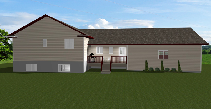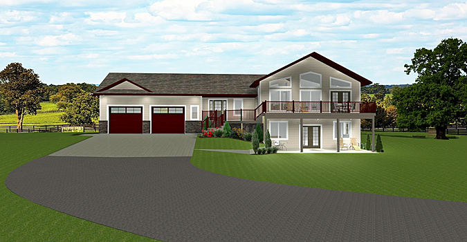 A great country home plan. The perfect floor plan for a building site with a bit of grade slope. Using a small retaining wall is all that is needed here to have the walkout basement. The large dropped entry from the front or the rear features a corner closet, laundry room, a 2-piece bath, and access to the oversized garage. The garage has a basement entrance. If you're wanting loads of natural lighting, check out the L-shaped country kitchen. Along with the dining room, the ceiling here is vaulted with rake head windows. A set of double garden doors lead out to the large front deck. A fireplace is located in the great room. The master bedroom has two closets and a 3-piece ensuite. The basement is a walkout and has large windows to allow lots of natural lighting. A set of double garden doors lead out to the covered front patio area.