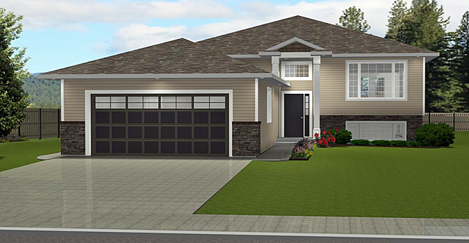 This is a nicely laid out 3-bedroom bi-level with a U-shaped kitchen that is open to the nook and living room areas. The split front entry has access to the large two car garage as well as access to the basement area. The top of the front closet becomes a plant ledge for the living room. The main floor laundry is conveniently located by the three bedrooms. The master bedroom features a walk-in closet and a three piece ensuite. From the nook you access the large covered rear deck. The front entry is also covered with craftsman style columns supporting the roof above. The basement is undeveloped but has large windows ready for whatever you decide to do with extra space. Overall a very simple design to build, yet still offering lots of curb appeal.